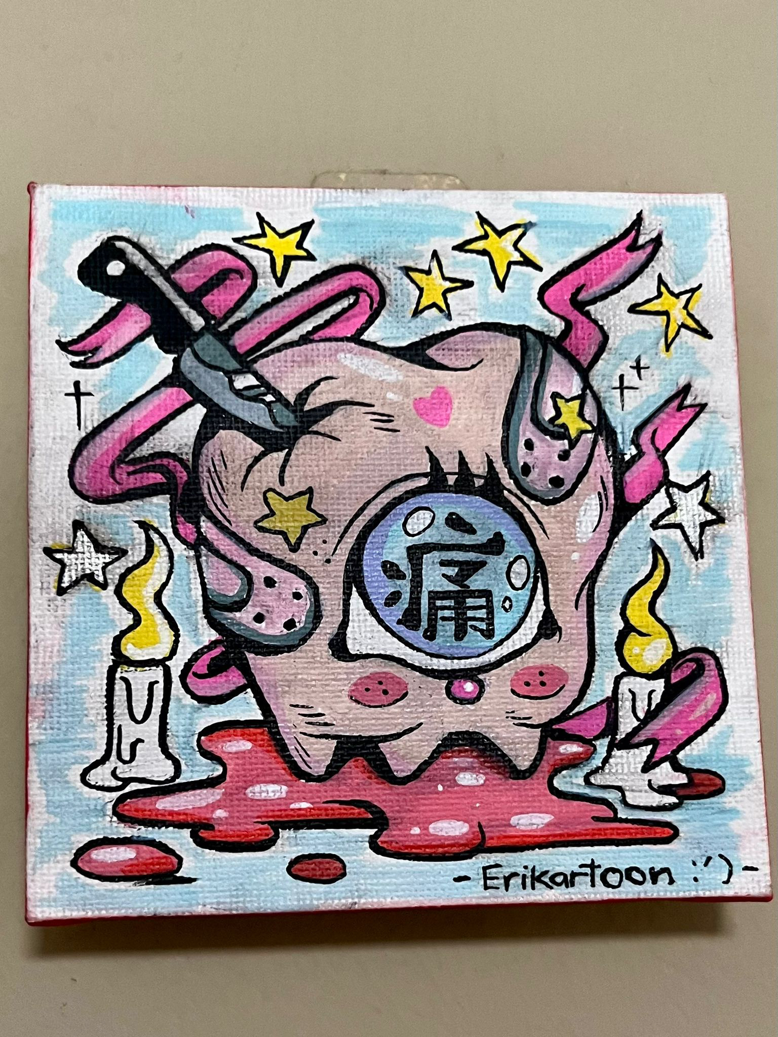 Erikartoon, An Eye for an Eye, A Tooth for a Tooth, 2025, 10x10cm, Acrylic on Canvas