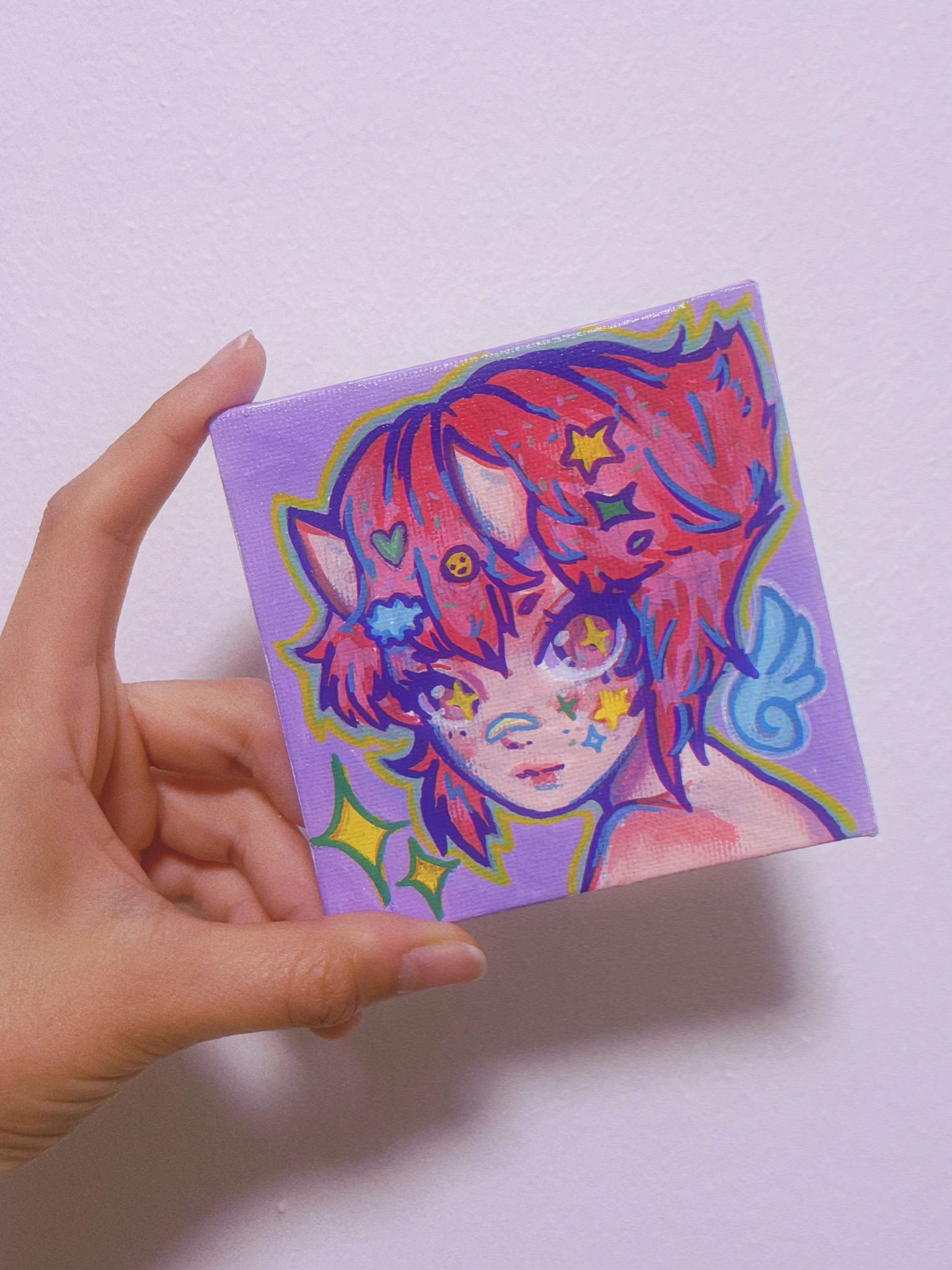 Comet Girl, Candy Coated, 2025, 10x10cm, Acrylic markers on canvas